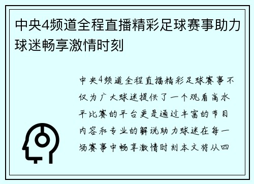 在当今数字化时代,足球比赛的直播已成为众多球迷体验赛事的重要方式。本文将深入解析足球比赛直播源资源库的各个方面,以帮助广大球迷畅享精彩赛事直播体验。首先,我们将探讨直播源资源库的基本概念与重要性,其次分析如何获取高质量的直播源,再者介绍如何选择合适的平台进行观看,最后给出一些实用技巧以提升观看体验。通过这些内容,读者能够全面了解和有效利用足球比赛直播资源,从而不再错过任何一场精彩的比赛。 1、直...