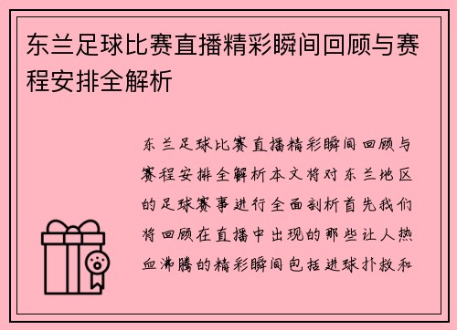 在中国足球的舞台上,泰山队作为一支具有悠久历史和深厚底蕴的球队,近年来在中超联赛中不断崭露头角。本文将对“泰山足球比赛中超直播视频精彩回顾与赛程分析全方位呈现”进行详细阐述。首先,我们将回顾泰山队近期比赛的视频精彩瞬间,展现球队的技术风采与战术运用;其次,对即将到来的赛程进行深入分析,评估球队面对各类对手时的优势与挑战;接着,从球迷的视角探讨直播观看体验如何提升观赛乐趣;最后,将结合整体表现总结出...
