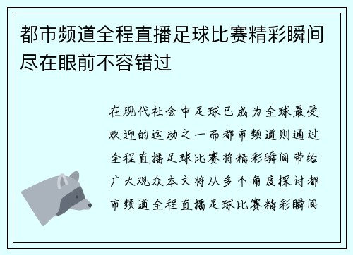 崇礼足球比赛直播精彩瞬间回顾与赛程安排全攻略,旨在为足球爱好者提供一站式的信息服务。文章将从赛事回顾、精彩瞬间、赛程安排以及观赛小贴士四个方面进行详细阐述。首先,我们将回顾近年来崇礼地区的重要足球比赛,捕捉那些难忘的瞬间,展示球员们的风采和团队精神。接着,文章将精选一些令人印象深刻的比赛片段,通过生动的描绘让读者仿佛置身于现场。此外,我们还会介绍即将到来的赛事安排,以便球迷们做好观赛的准备。最后,...